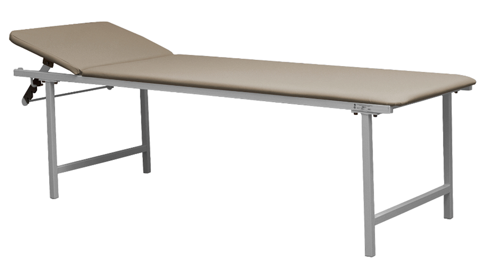 Кушетка представляет собой разборную конструкцию, выполненную в виде сварного каркаса и двухсекционного ложа: